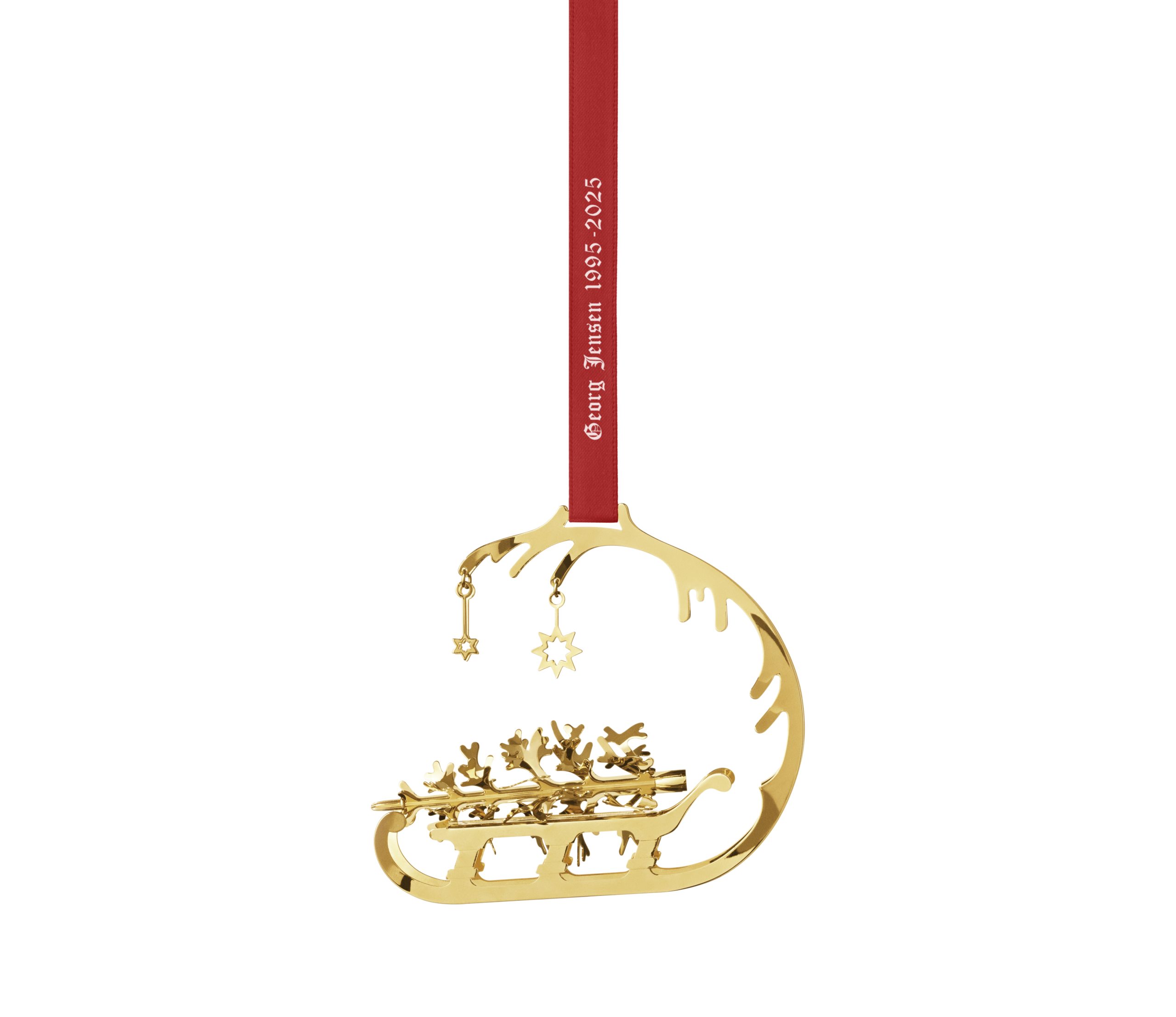 Denne sjarmerende juleuroen ble opprinnelig skapt i 1995 av den danske designeren Lene Munthe, og i 2025 relanseres den for å markere juleuroens 30-årsjubileum. Det vakre og tidløse motivet – en slede med et funklende juletre – fanger julens hyggelige stemning. Julesledens elegante kurver danner en bue og former seg til en grantregren, dekorert med fine stjerner som forsiktig fanger lyset.