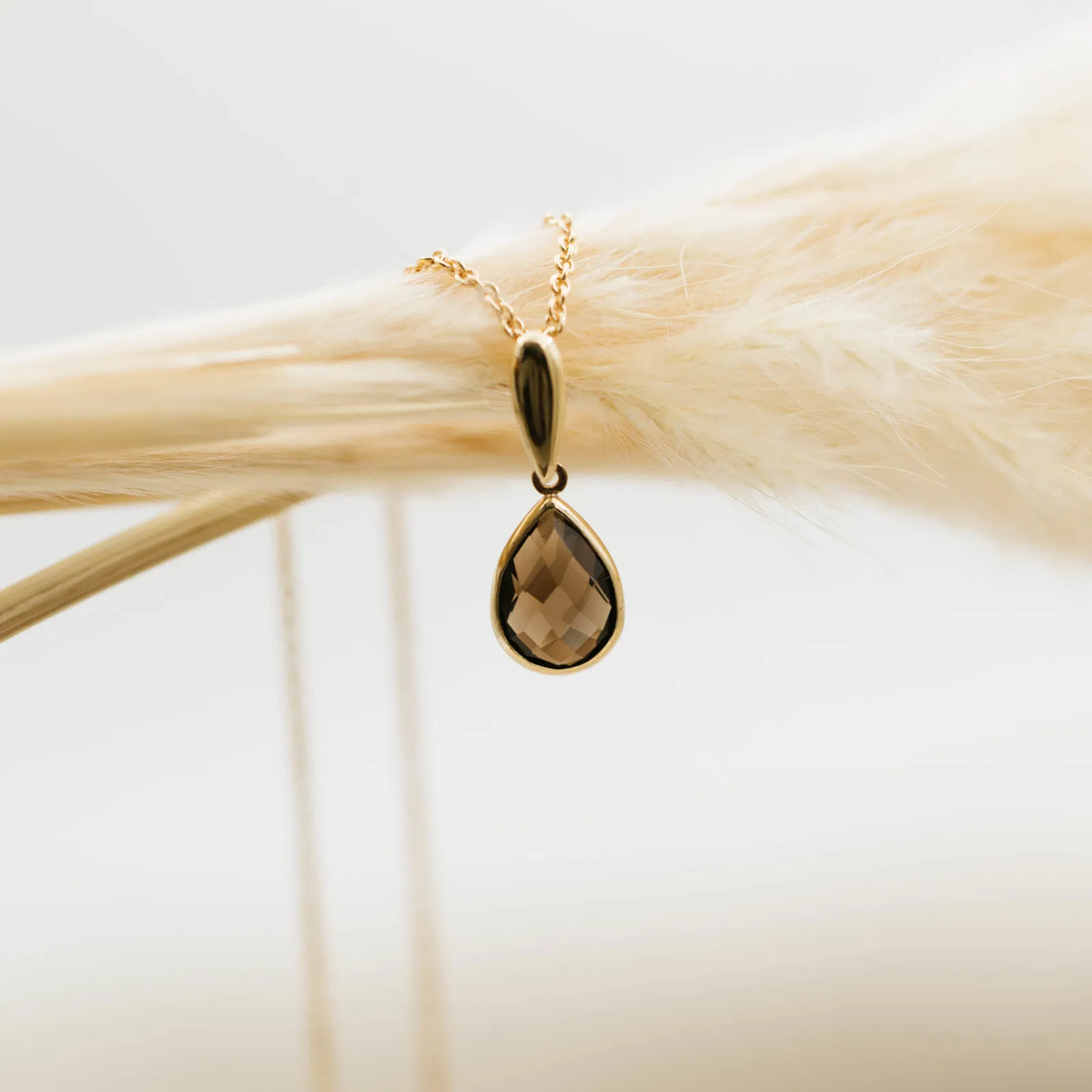 14K Gult gull anheng m/ røkkvarts. H:20 mm B:7,5 mm