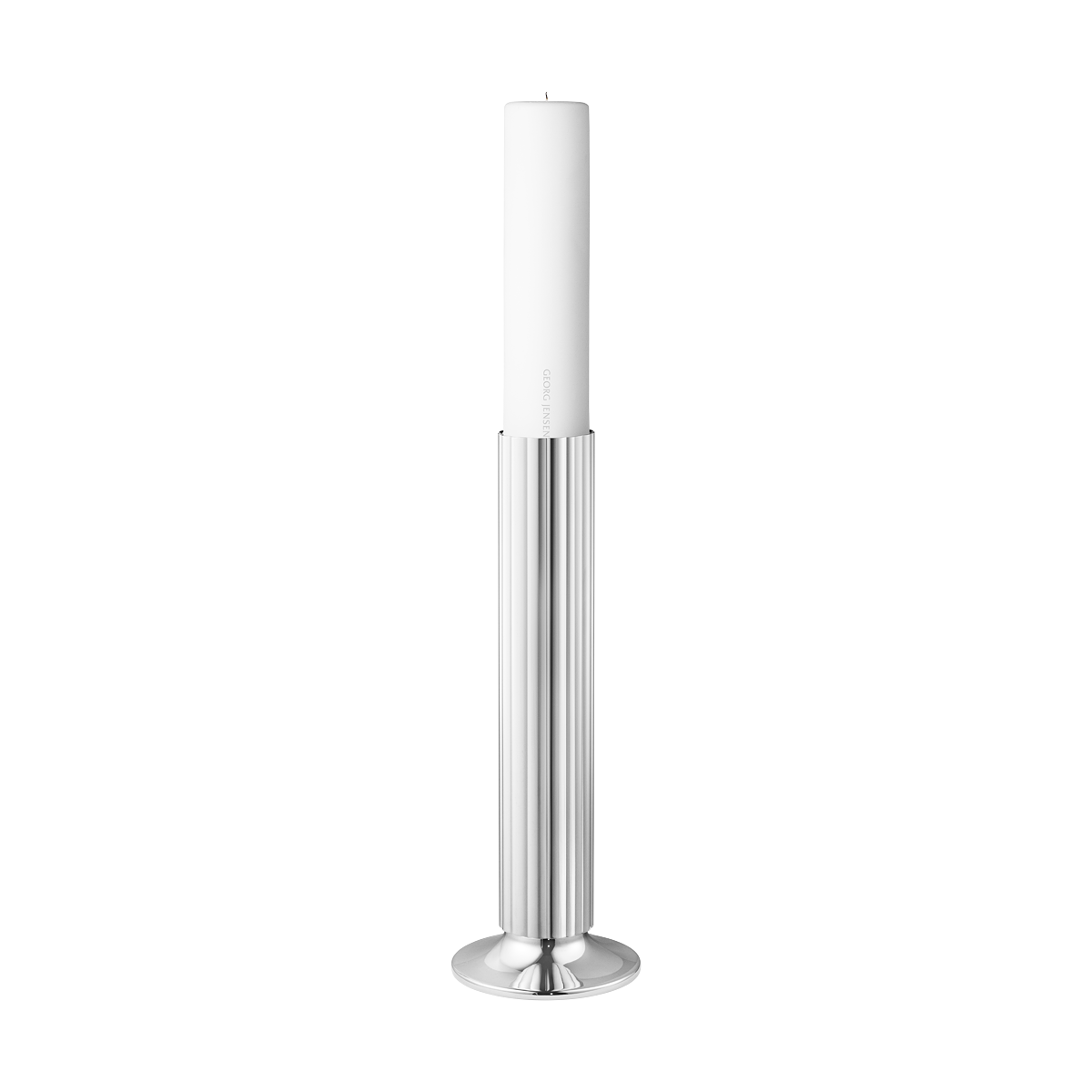 Gi hjemmet et snev av Art Deco-eleganse med denne elegante Bernadotte gulvlysestaken. Med den karakteristiske riflede dekorasjonen fungerer den vakkert alene og gir et enda sterkere fokuspunkt når den matches med andre. Lysestaken har en innvendig pigg som holder lyset trygt på plass, og er designet for å passe perfekt til Georg Jensens egne lys.