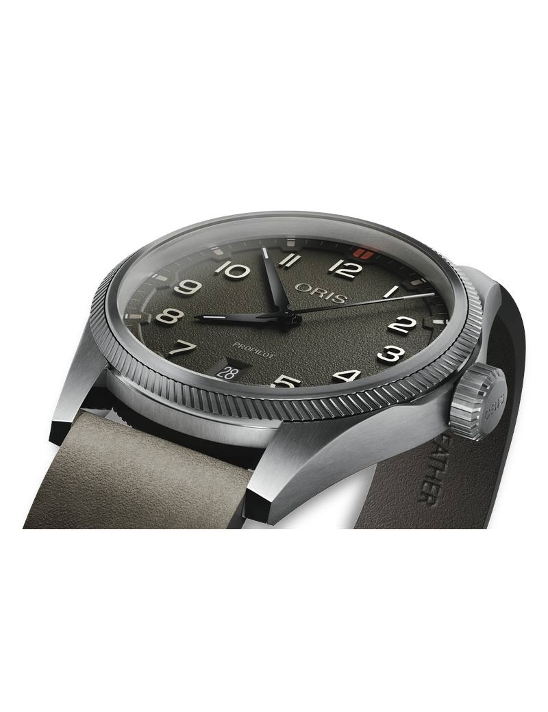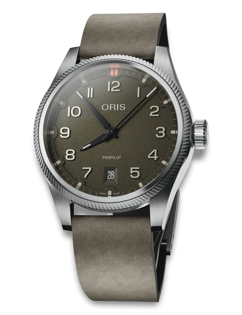 Et ekte klassisk pilot ur med selvlysende visere og tall, «oversized» krone og dato.