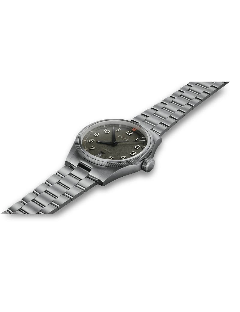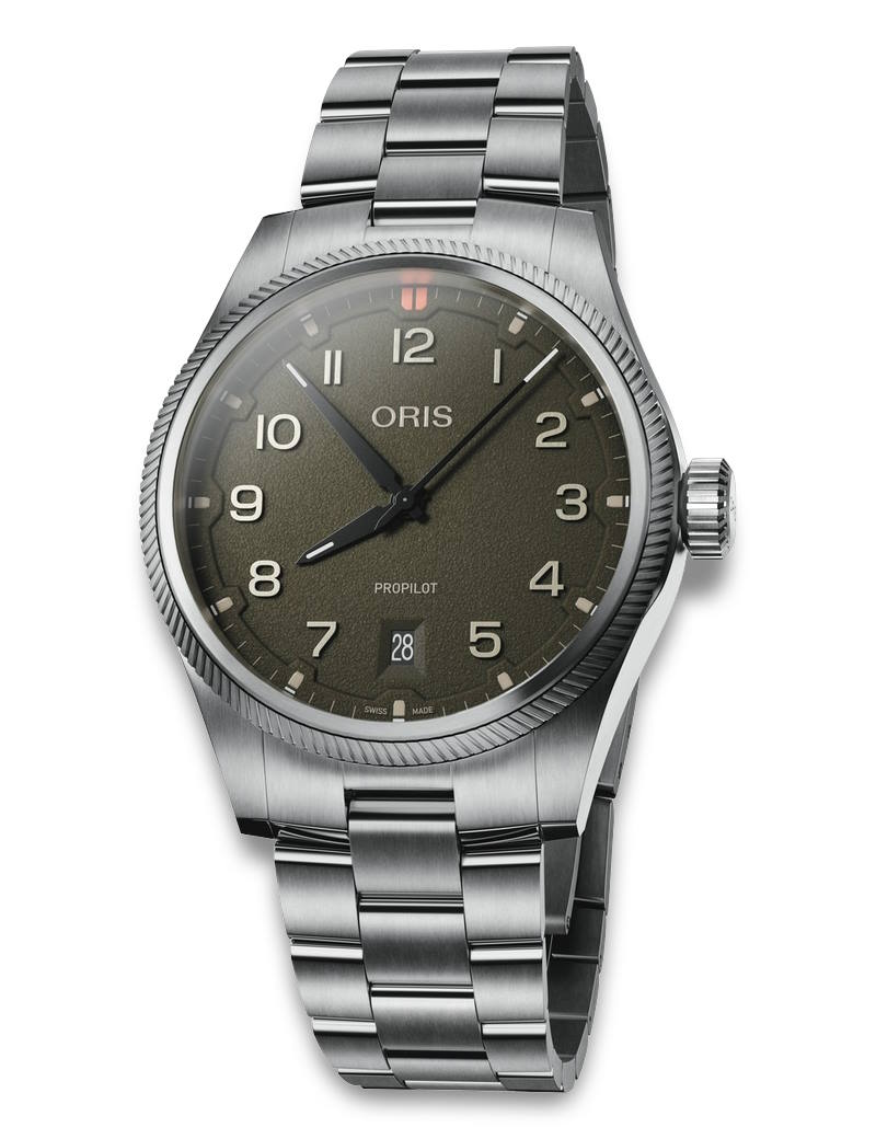 Et ekte klassisk pilot ur med selvlysende visere og tall, «oversized» krone og dato.