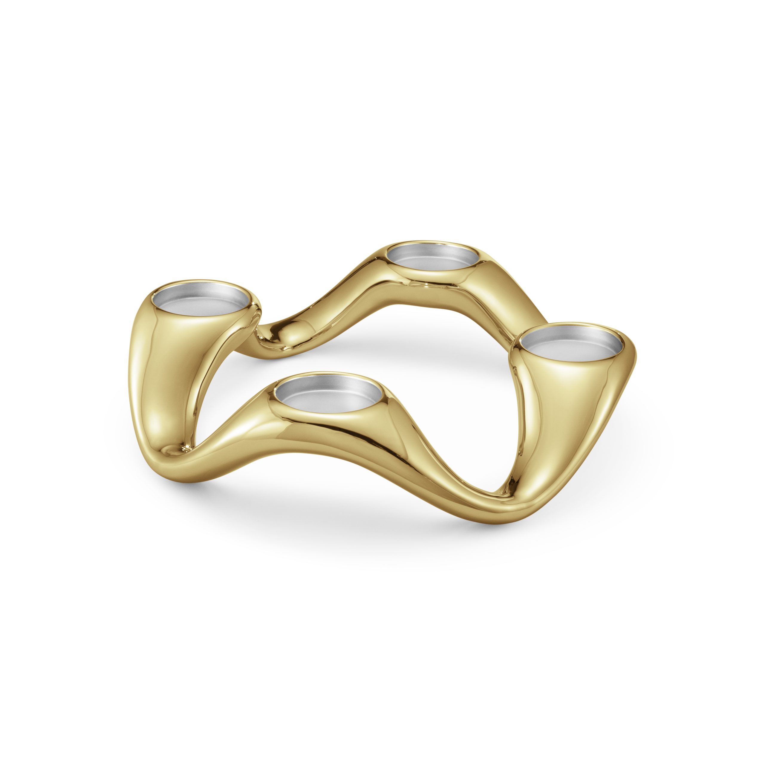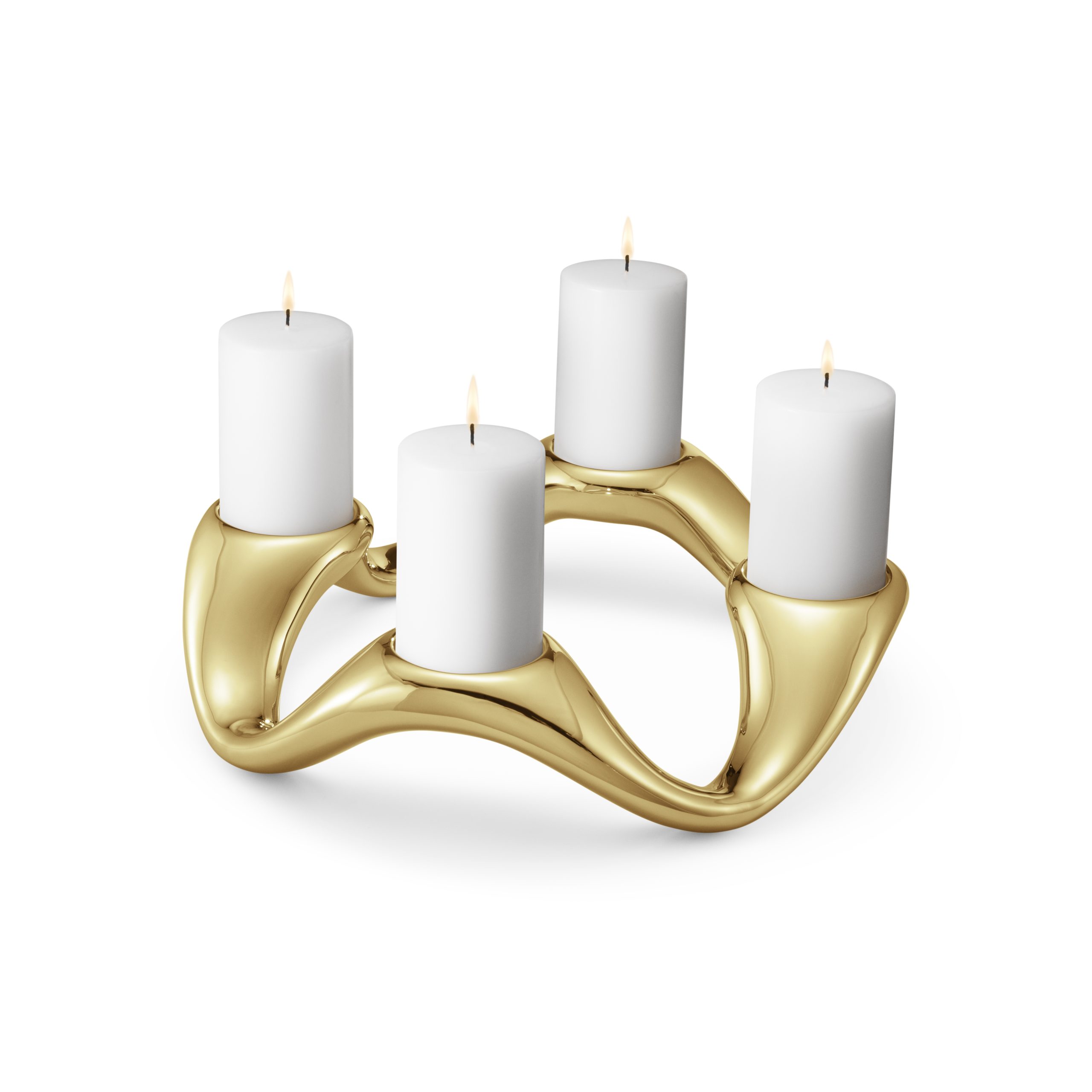 Denne skulpturelle lysestaken i rustfritt stål fanger en følelse av flyt og bevegelse og danner et flott midtpunkt på bordet, særlig når levende lys reflekteres tilbake på den bølgende blanke overflaten. Med plass til fire kubbelys er den perfekt til adventstiden, men den er diskret nok til å brukes hele året. Lysestaken er mesterlig laget i høyglanspolert rustfritt stål og har plass til 4 kubbelys, opptil Ø60 mm. Lys må kjøpes separat.