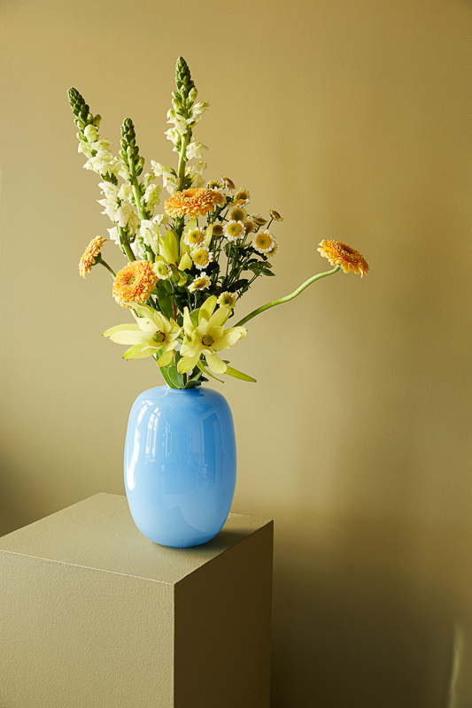 Vaseserien «Dew» er inspirert av og tilpasset vår nordiske fauna. De lyse, klare fargene og den opake overflaten forsterker dette uttrykket. Den smale åpningen i toppen av vasen tar vare på selv de sarteste stenglene på våre engblomster og strå. Vasene er designet av 5. generasjon Th. Marthinsen, Anette Marthinsen. Serien er munnblåst i krystall hos glassprodusenten Magnor på Hedmark.