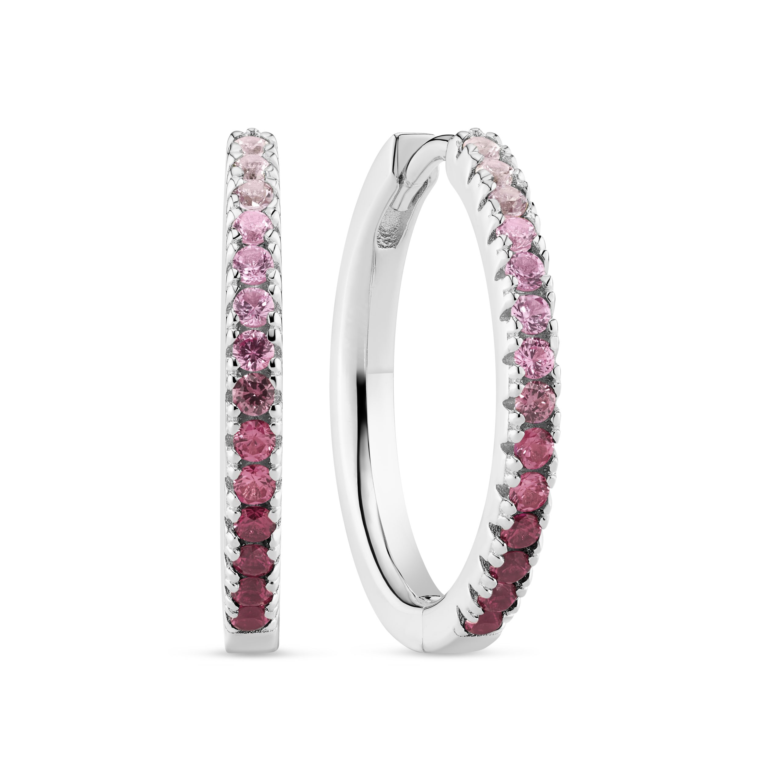 sølv øreringer med gradert rosa fargede cubic zirkonia. Diameter 20mm, bredde 2mm