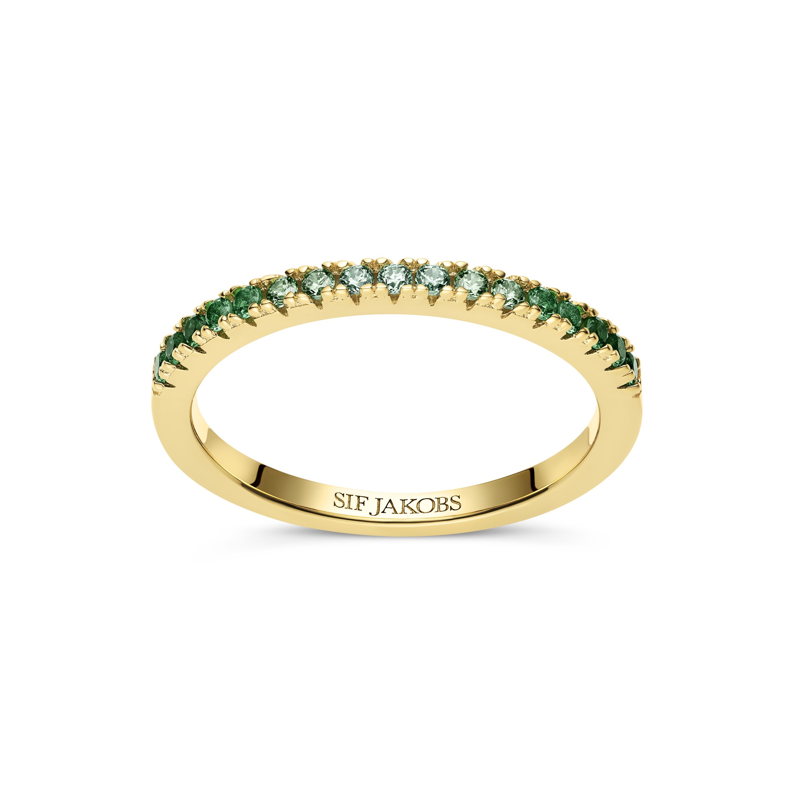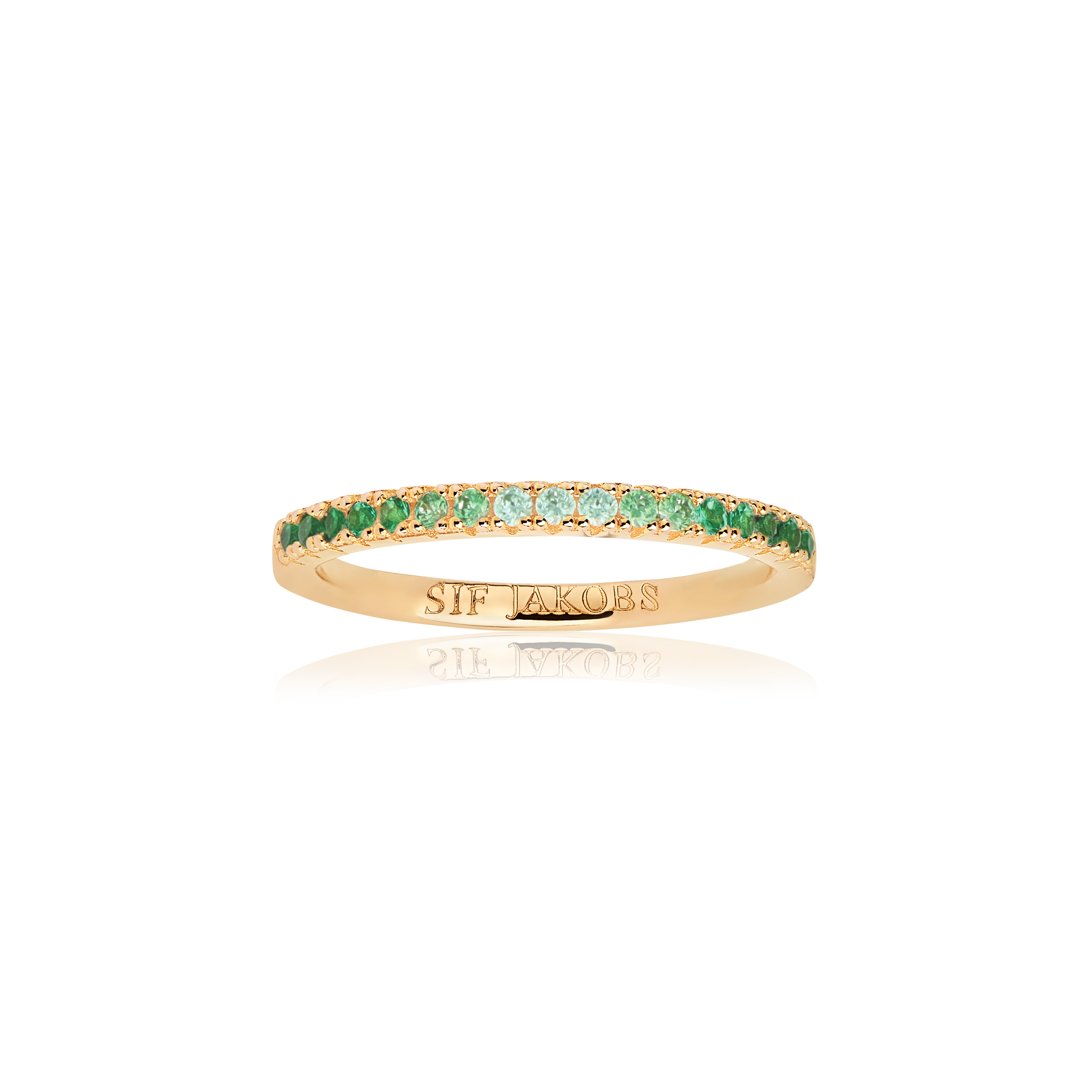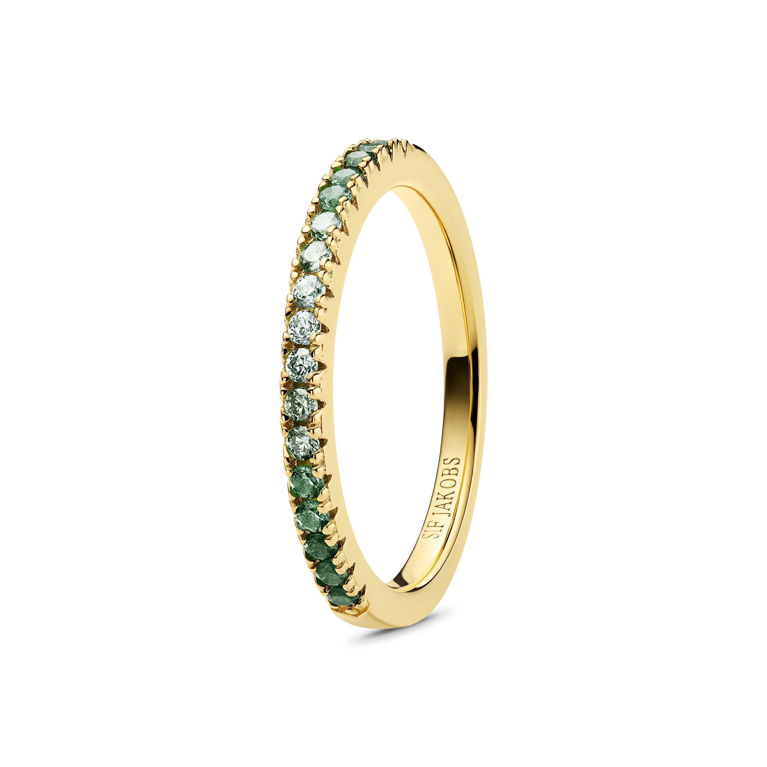 Forgylt sølv ring m/ gradert grønne cubic zirkonia
