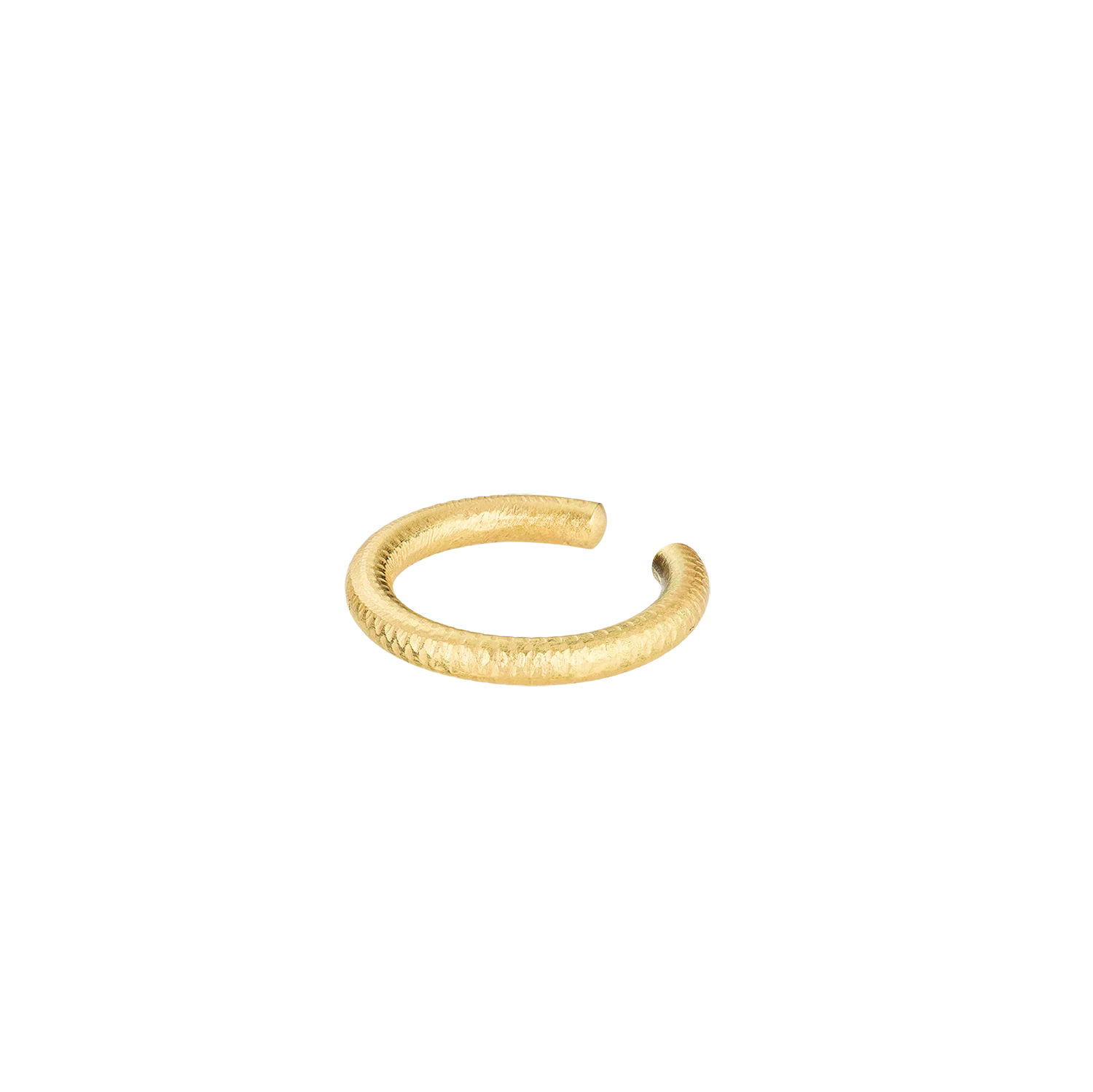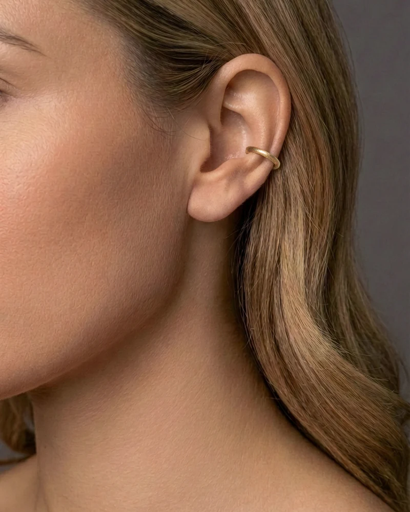 Esme Cuff i 18K gull er en minimalistisk og skulpturel cuff -ørering, som hviler lett langs øret. Som et raffinert alternativ til tradisjonelle piercings tilfører denne lille cuff et sofistikeret lag til smykket uten å dominere helheten.