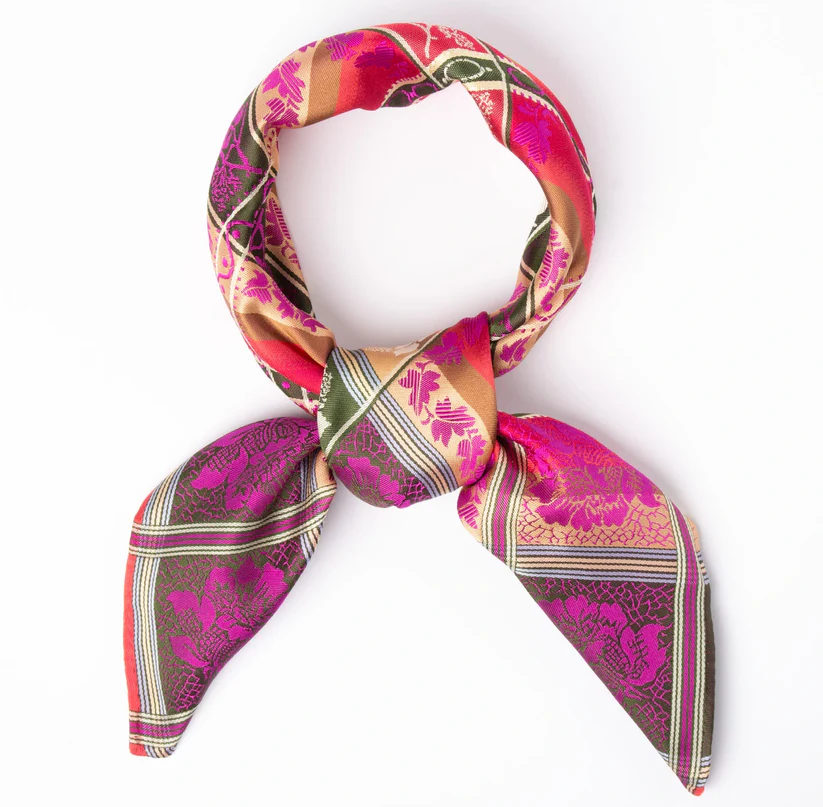 Silkeskjerf til pynt, bunad og festdrakter. Silkeskjerf brukes til bunader og festdrakter over hele landet, men passer like godt som en «fargeklatt» for antrekk i hverdagen.