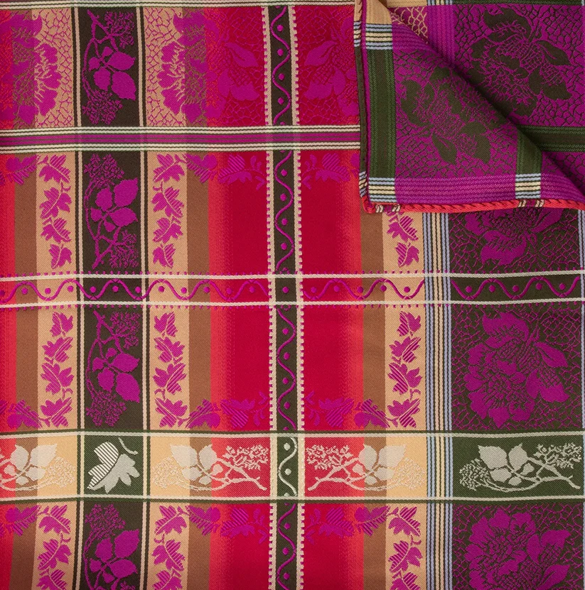 Silke har mange gode egenskaper. Det er mykt og godt å ha på samtidig som det varmer om det er kaldt. Tyrihans bruker kun den beste silke når de produserer sine skjerf og de har flotte jacquard mønstre med farger som passer i tiden.
