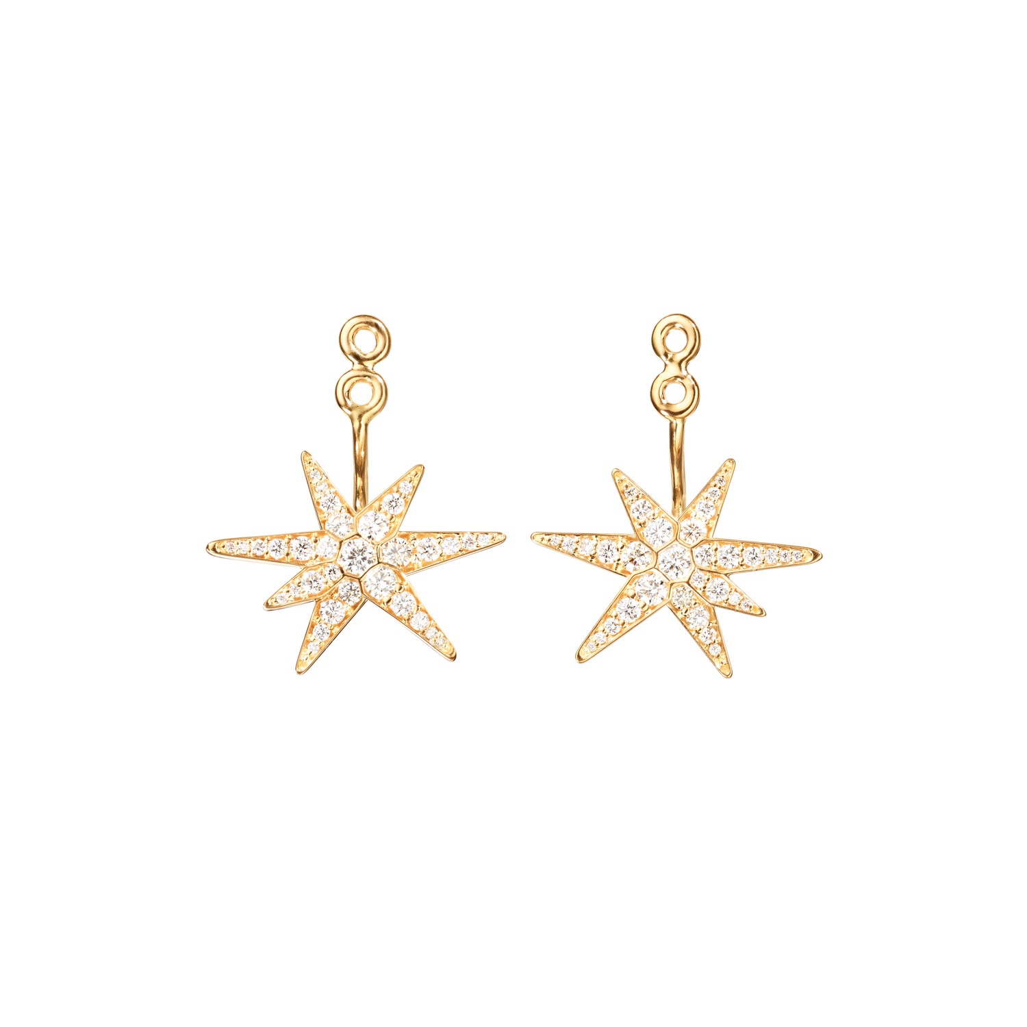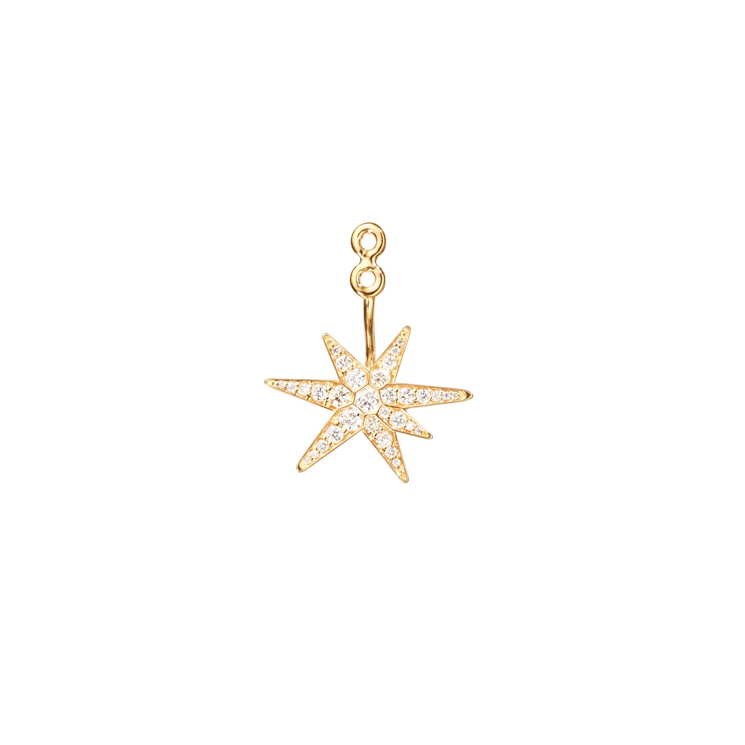 Designet av Charlotte Lynggaard. Funky Stars medium anheng for ørepynt i 18 karat gult gull med 32 diamanter. Totatl 0,18ct. TW.VS (Single) . Solgt enkeltvis (velg par hvis man ønsker det).