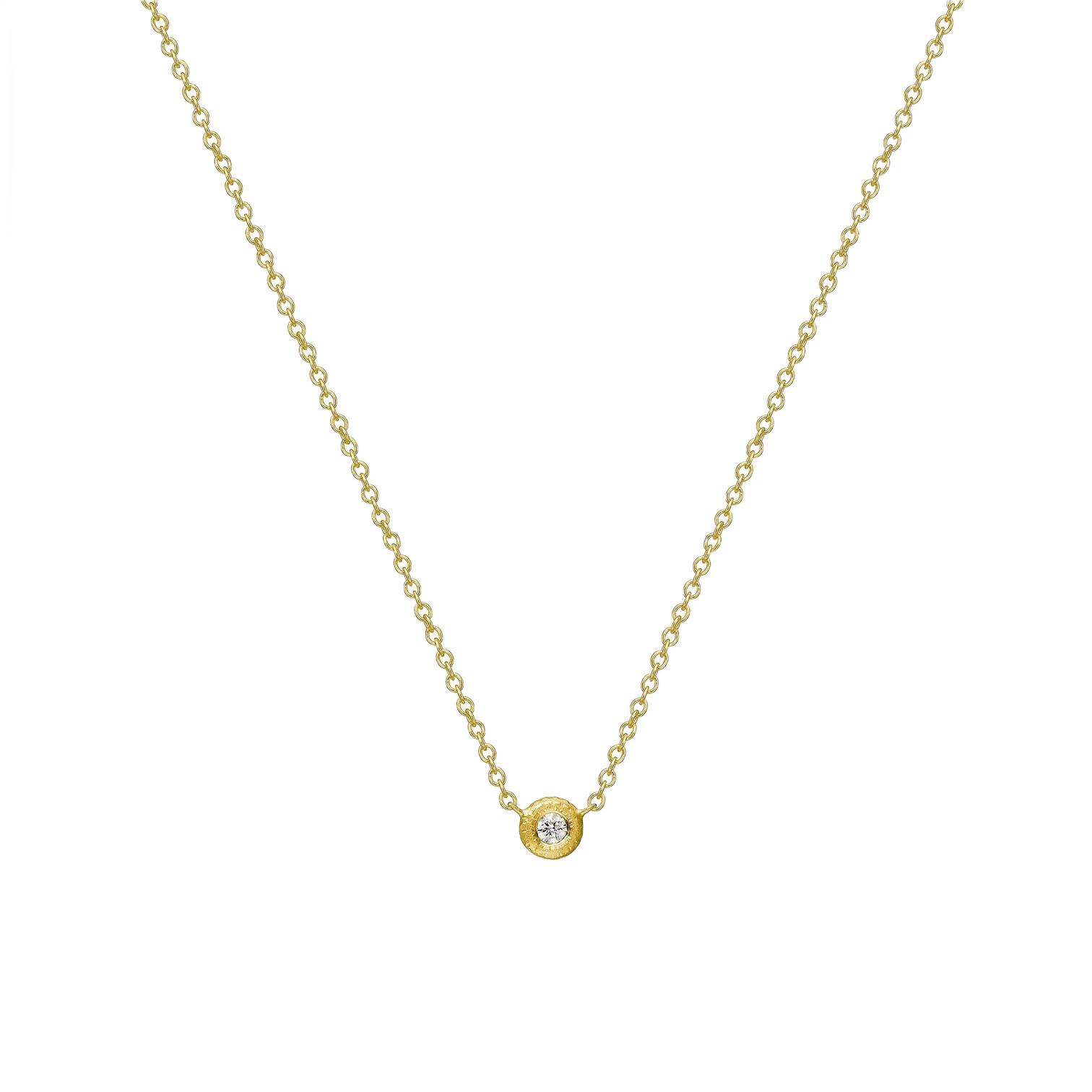 Den flotte Glory kjedet med en brillantslipt diamant, som er fattet i edelmetall og omkranset av en håndfilt sirkel, som framhever stenenes naturlige fargespill. Resultatet er et enestående kjede med et tidsløst design, som er opplagt til at gå i arv fra generasjon til generasjon.
