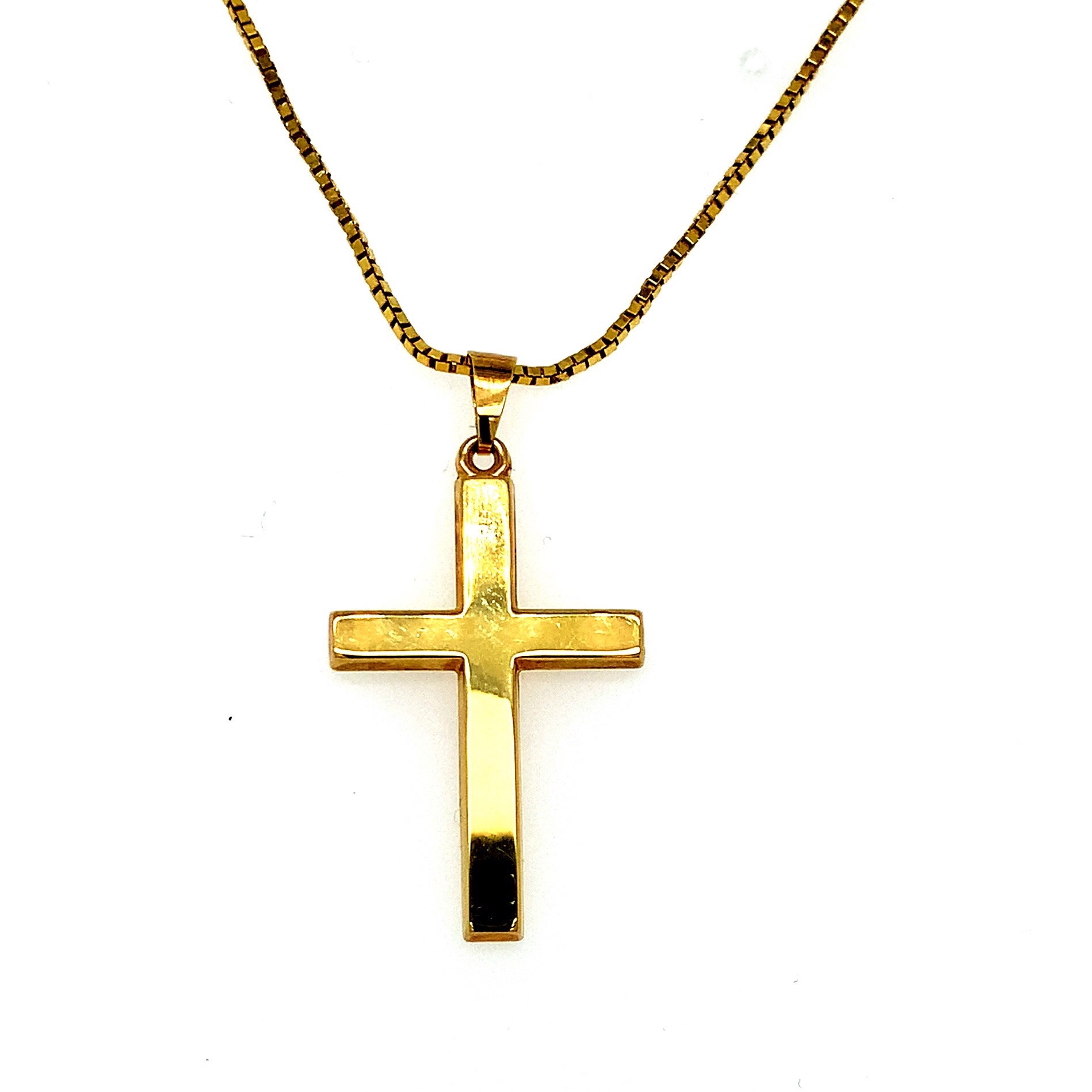 14K gull kors, hult Mål: 31mm x 19xmm x 1,75mm (Høyde 31mm målt uten kjedeløper). Kjede er ikke inkludert.