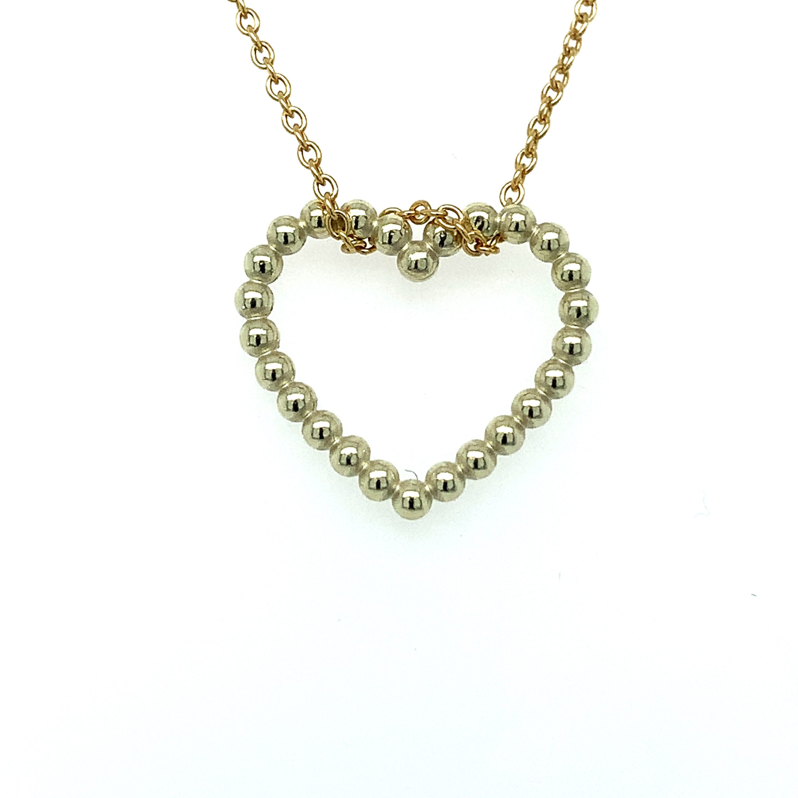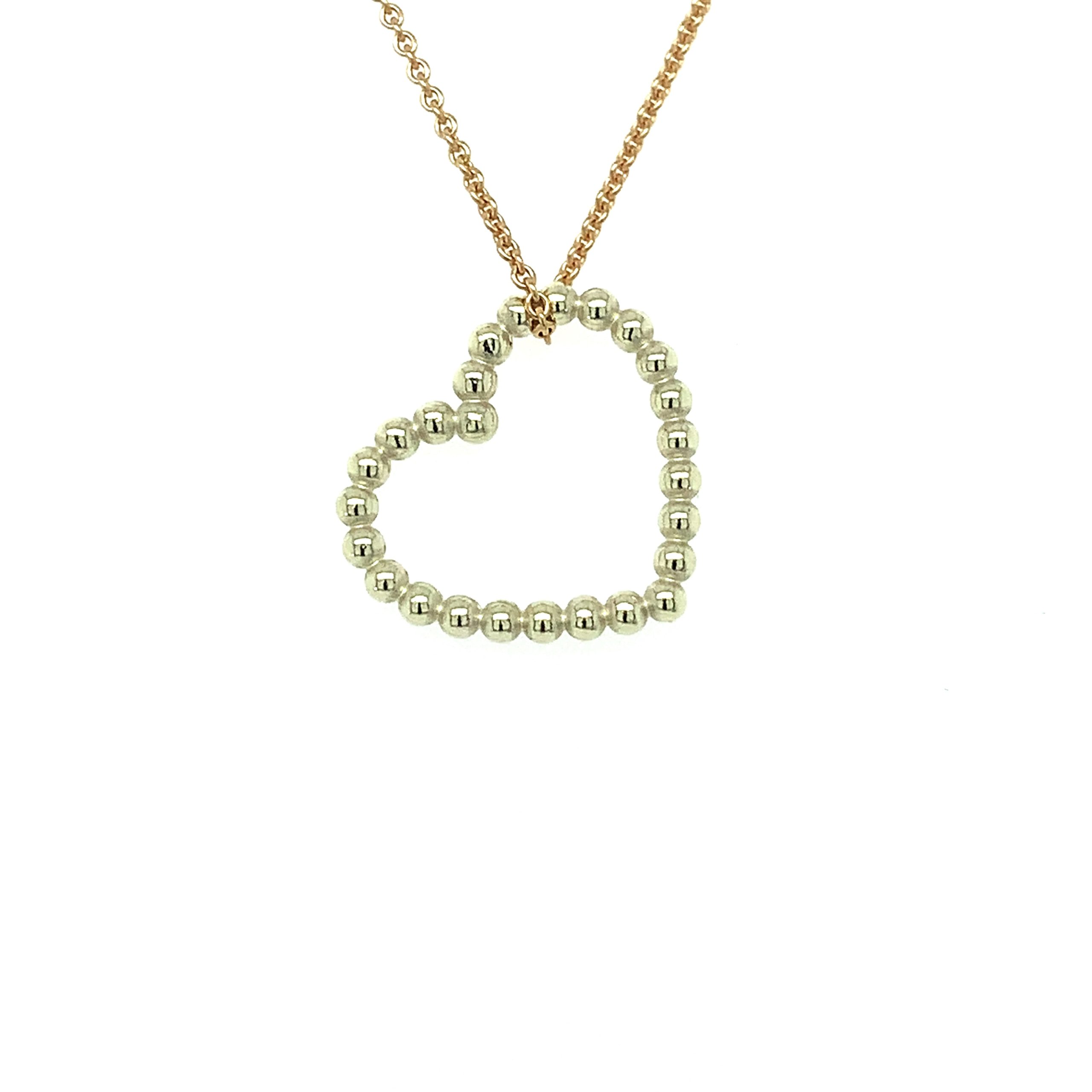 Gull hjerte bygd opp av kuler, uten hempe. Hjertet henges direkte i kjedet. H16 x B18mm. Kjedet medfølger ikke og må kjøpes separat..