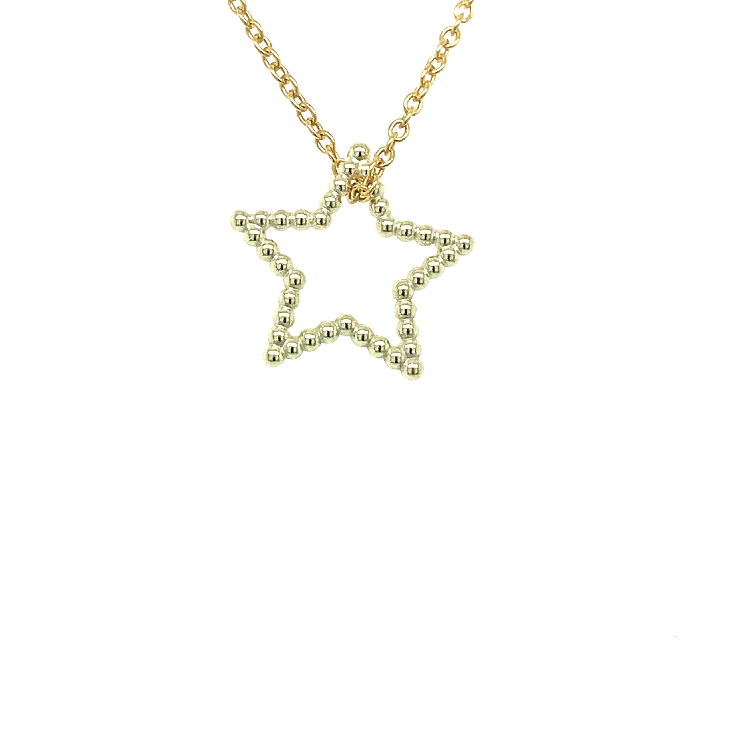 Gull stjerne bygd opp av kuler, uten hempe. Stjernen henges direkte i kjedet. 13mm Kjedet medfølger ikke og må kjøpes separat..