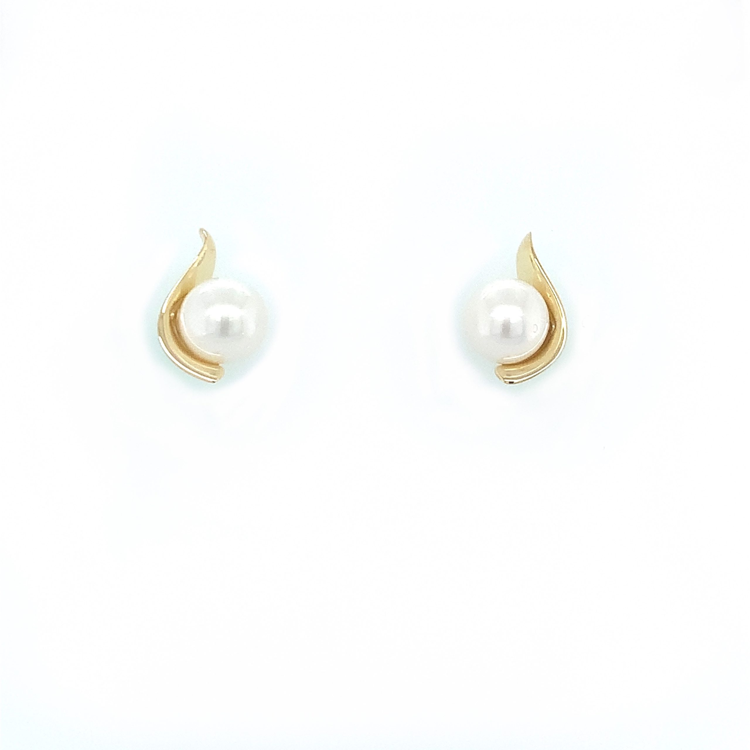 Gull perleørepynt m/ ferskvannsperler 6 mm. Ørepynt 12 x 7,5mm