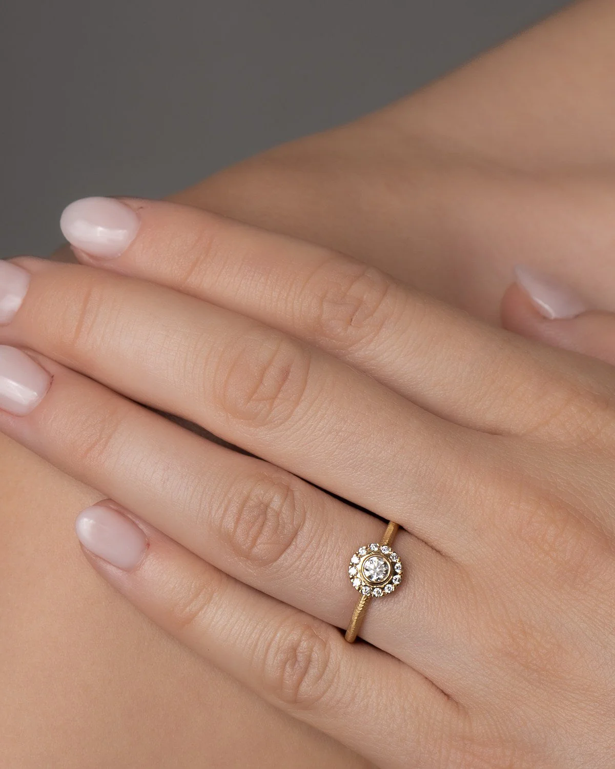 Den store Harmony ringen har en diamant i midten på 0,23 carat omkranset av 12 diamanter, hvilket gir deg en ring med i alt 0,33 carat. Harmony ringen er en lekker forlovelses- eller vielsesring eller en fantastisk gave til deg selv.