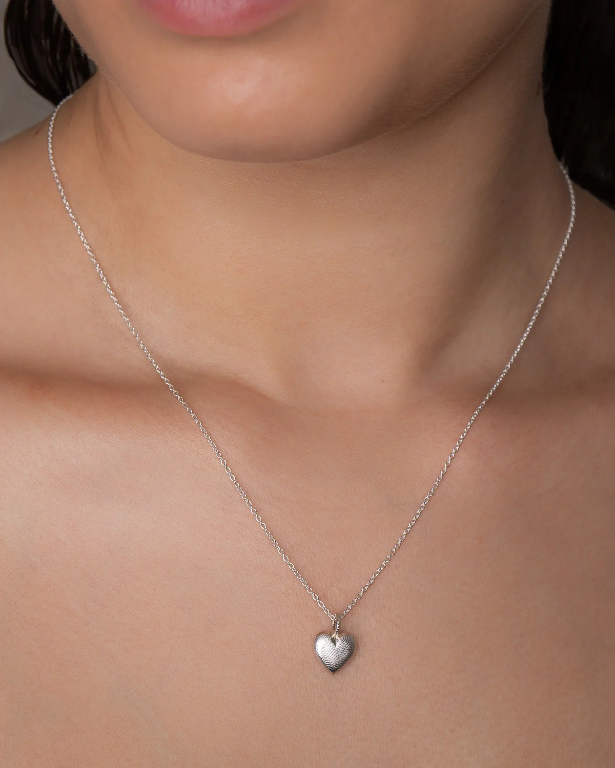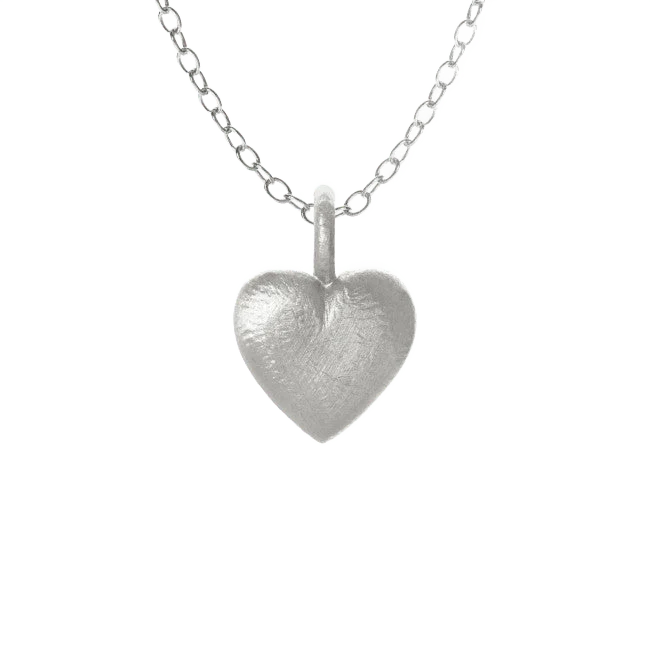 Dette flotte hjerteanhenget er både feminint og klassisk. Den håndfilte overflaten skaper en rå kontrast til den klassiske hjerteformen og gir et glamorøst uttrykk.