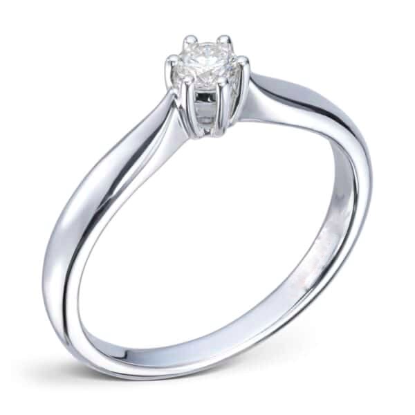 Hvitt gull enstens ring m/ 0,15ct TW Si