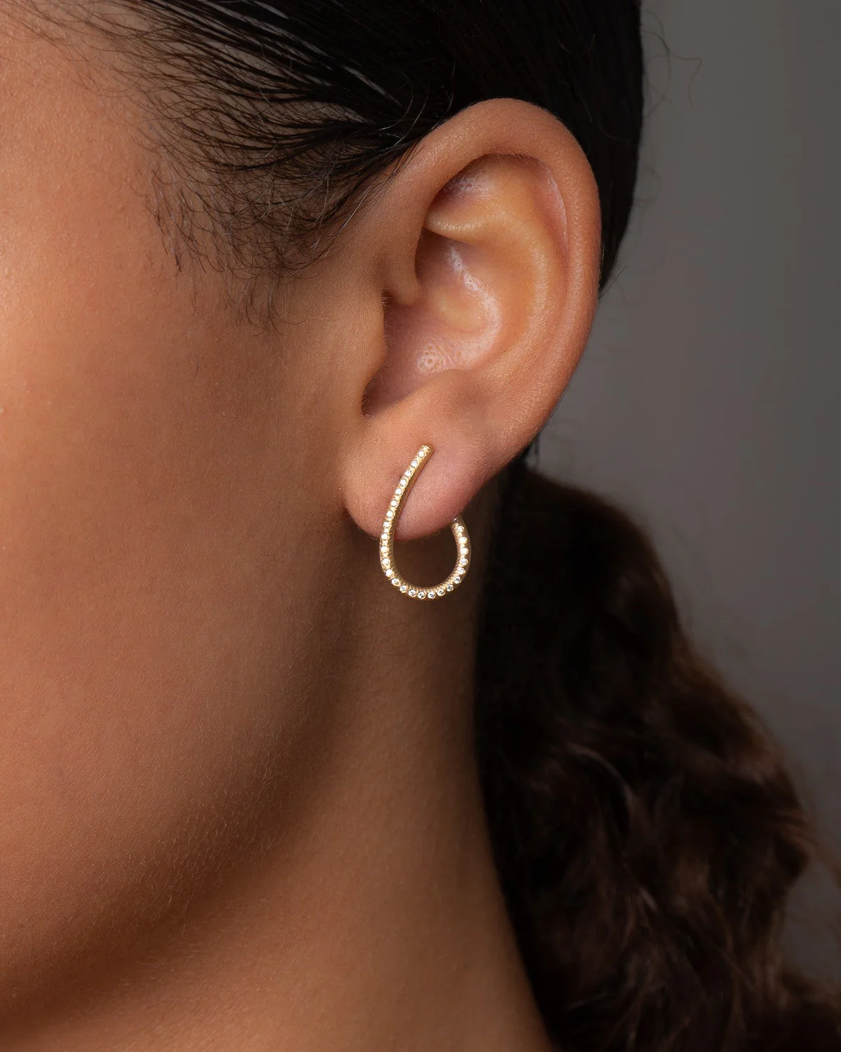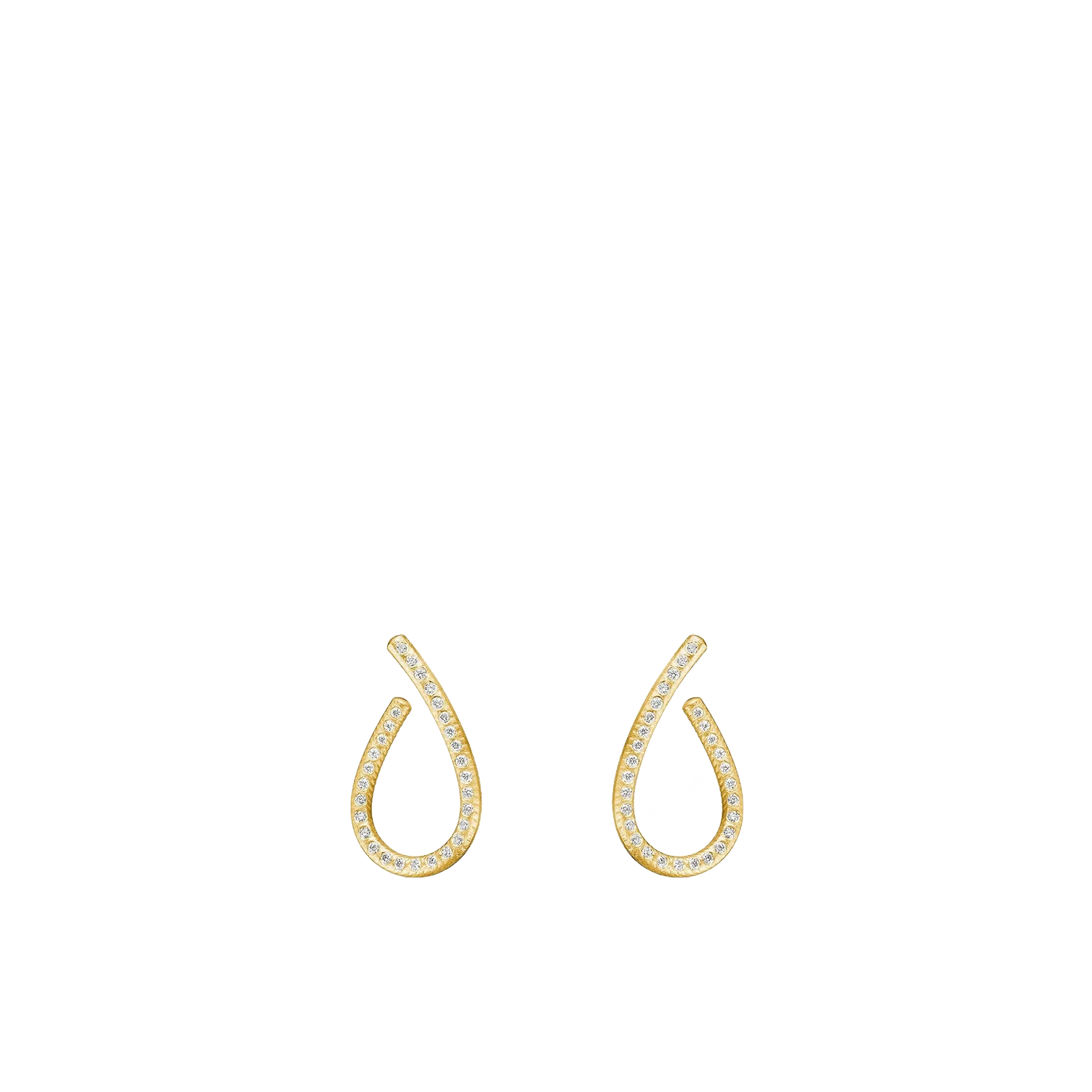 Guldsmedene har gitt øreringene Dulongs håndfilte, riflede signaturoverflate, som gir en rå kontrast til de eksklusive brillantslipte diamantene