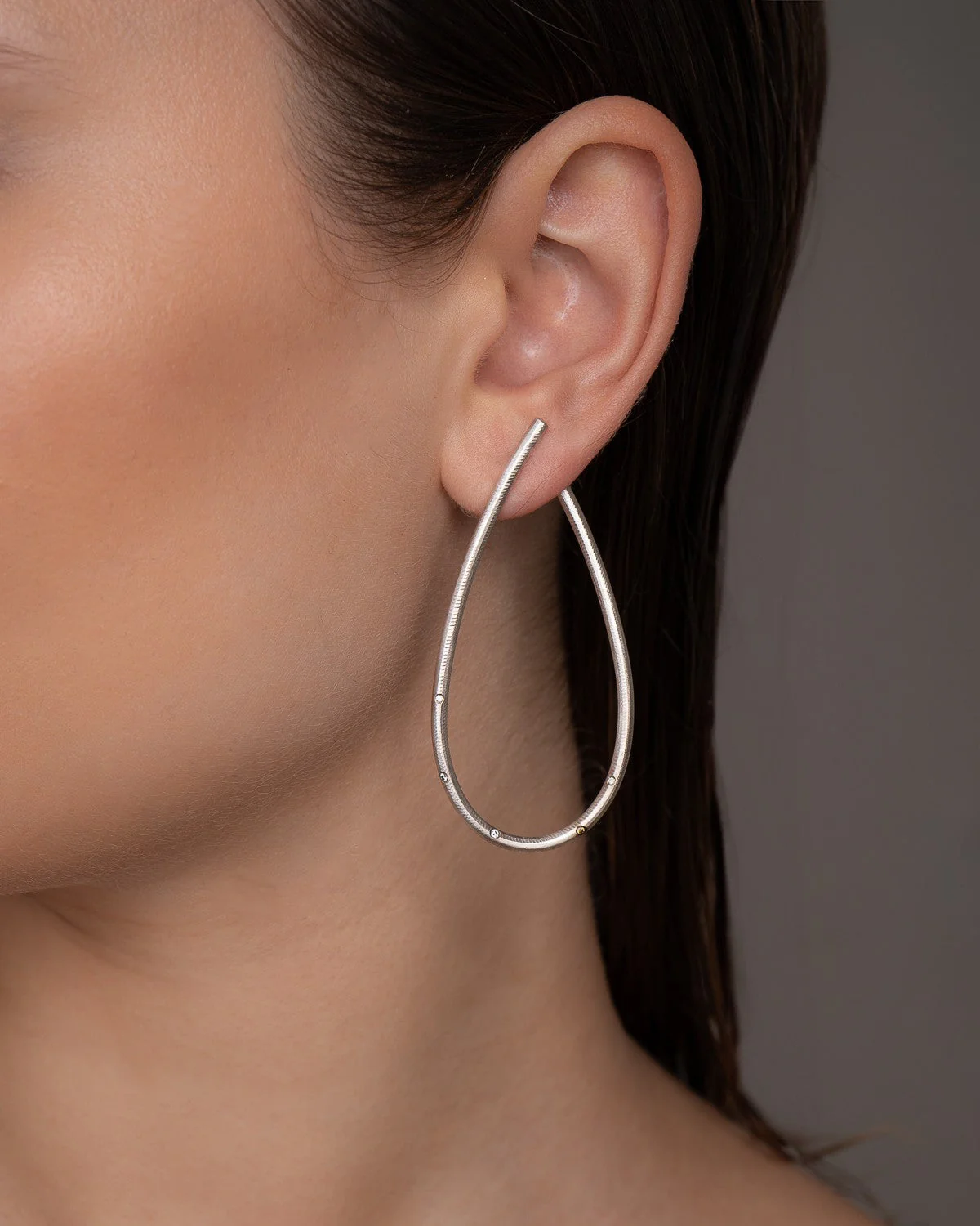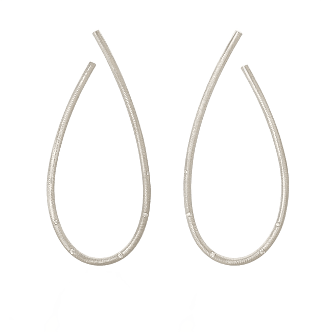 Kharisma øreringene i Mega størrelsen er til deg, som er vant med det ekstraordinære. Den høye, slanke buen med brillanter blir ennå mer dramatisk, når den tilføres anheng med perler eller flotte stener.