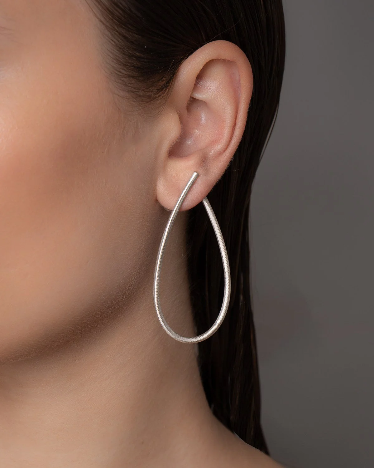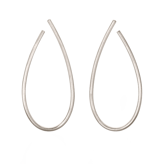 I den store størrelse er kurven perfekt dråpeformet. Kharisma øreringene kommer i fire forskjellige materialer: 18K gult gull, 18K hvitt gull, oxidert sølv og sølv, samt i fire forskjellige størrelser, med eller uten brillanter.