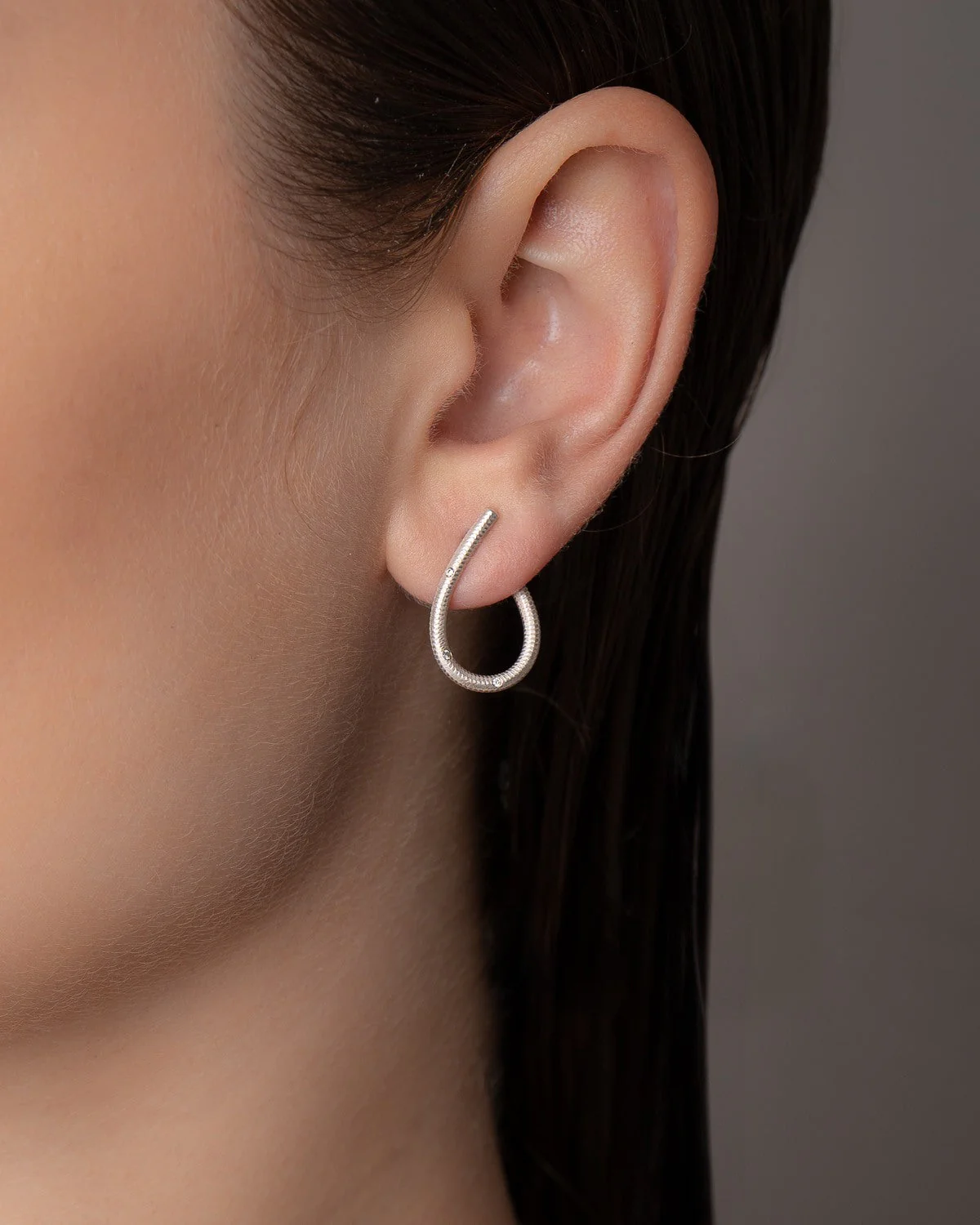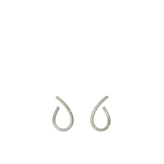 I den store størrelse er kurven perfekt dråpeformet. Kharisma øreringene kommer i fire forskjellige materialer: 18K gult gull, 18K hvitt gull, oxidert sølv og sølv, samt i fire forskjellige størrelser, med eller uten brillanter.