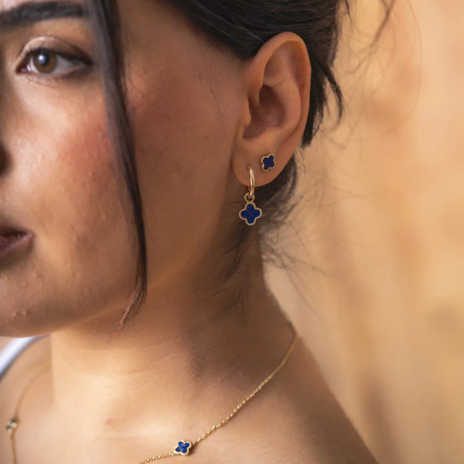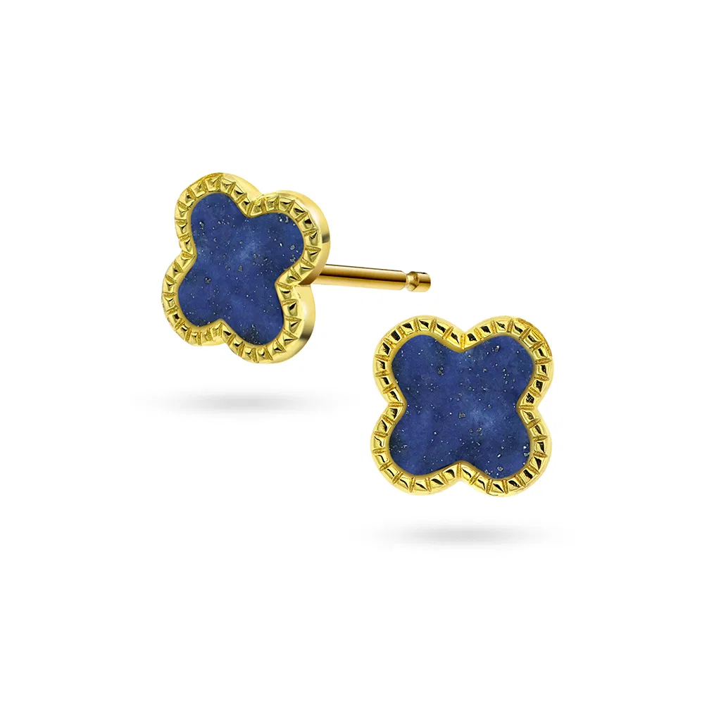 Ørepynt i forgylt sølv med havblå kløver