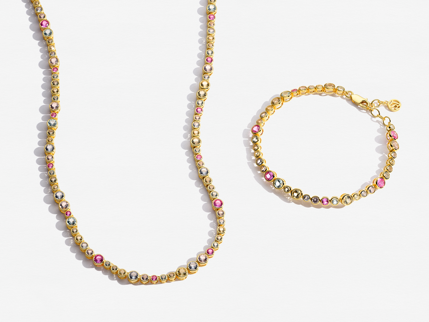 Forgylt sølv armbånd m/ flerfarget cubic zirkonia. Lengde 17 cm + 2 cm, bredde 5 mm