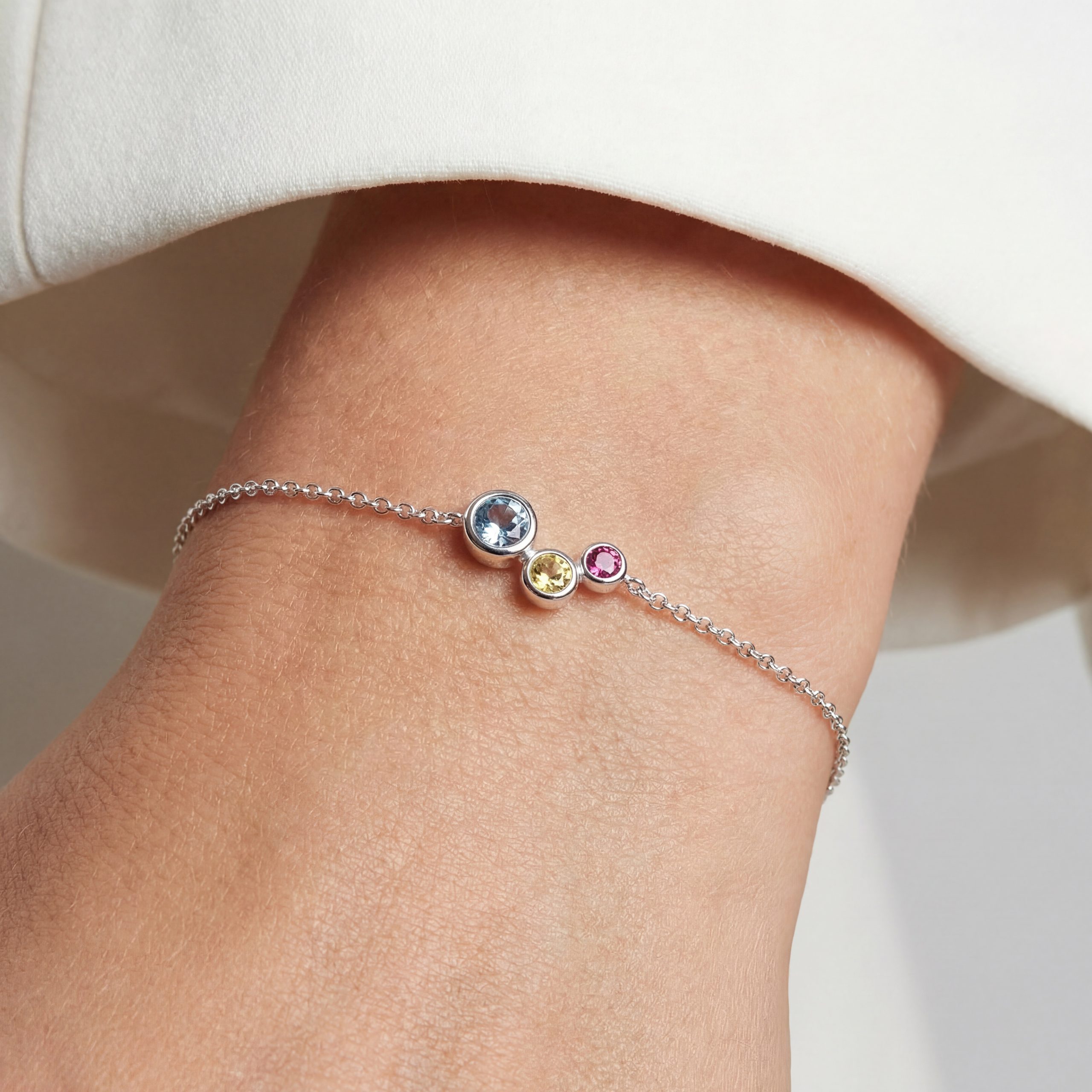 Sølv armbånd m/ flerfarget cubic zirkonia. Lengde 18 cm justerbar