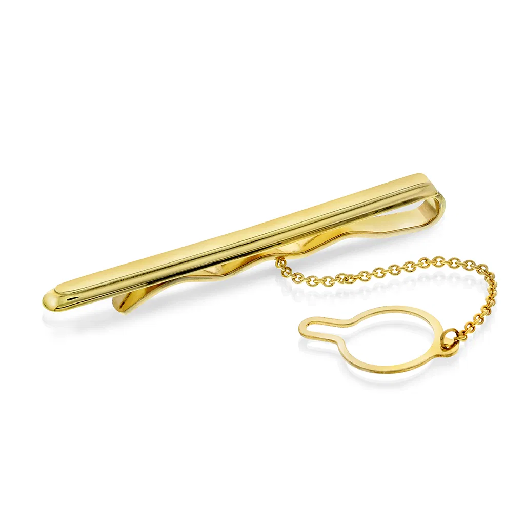 Gult gull. H:5 mm B:53 mm. 14K gull i front, mekanisme og sikkerhetslenke i double.