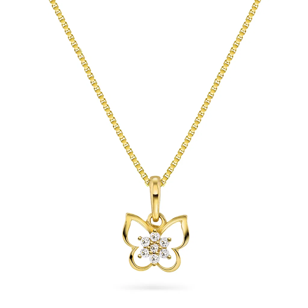 Prins & Prinsesse, Smykke til barn i 585 gult gull med zirkonia og sommerfugl